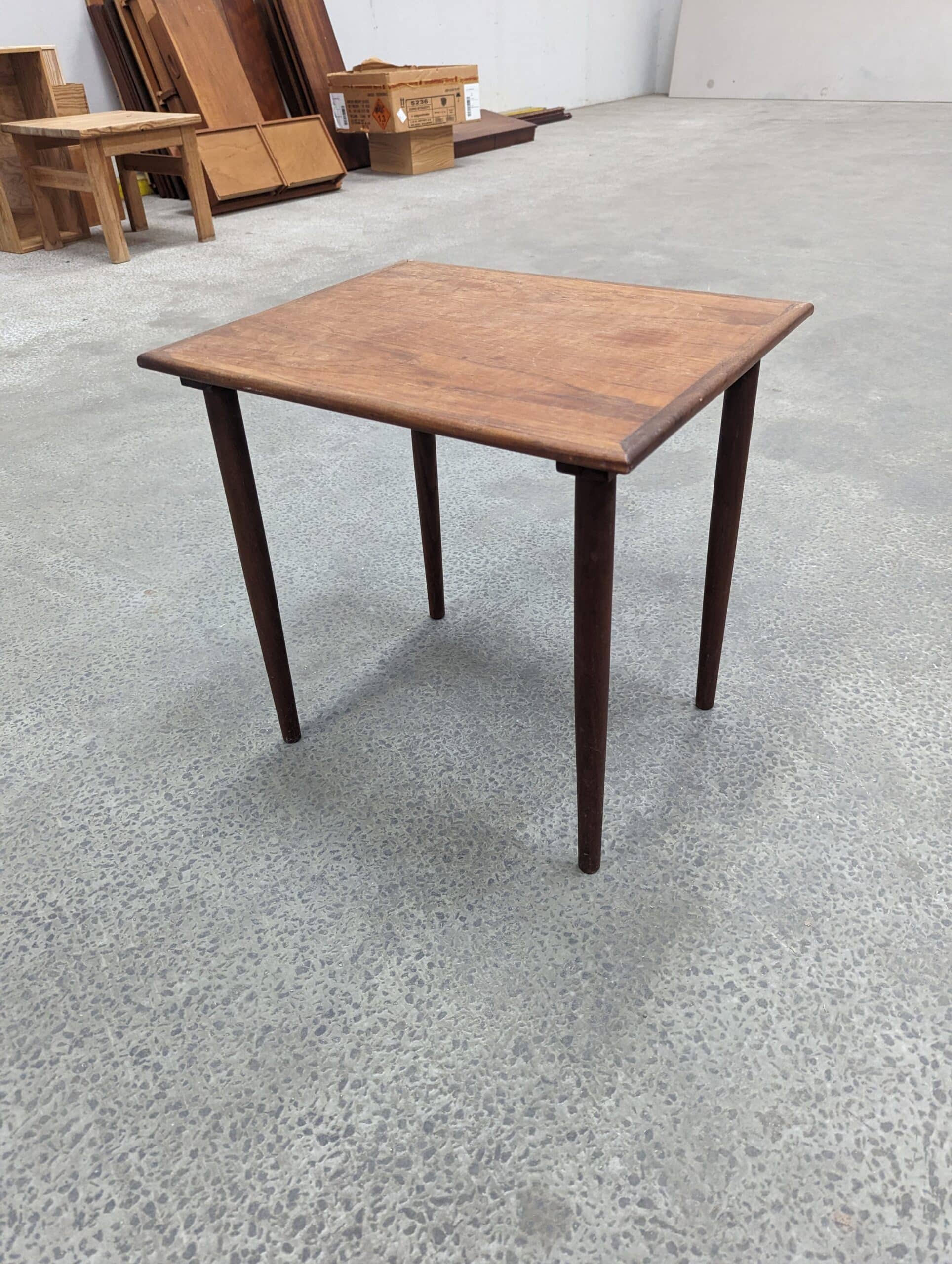 indskudsbord/sofabord i nøddtræ med tynde ben og lave støttepinde