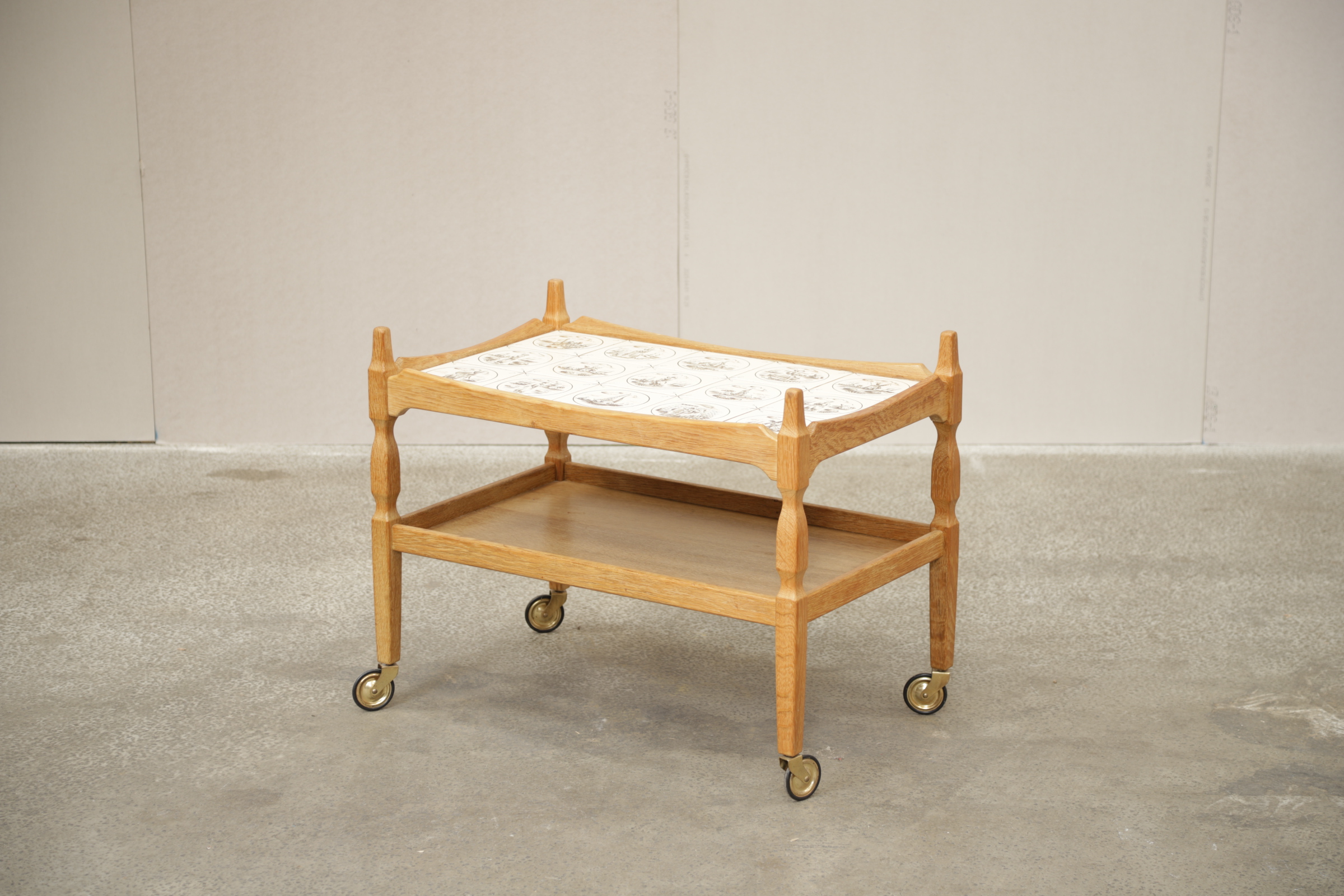 Serveringsvogn, barvogn, bakkebord, massiv egetræ, kakler, Kjærnulf