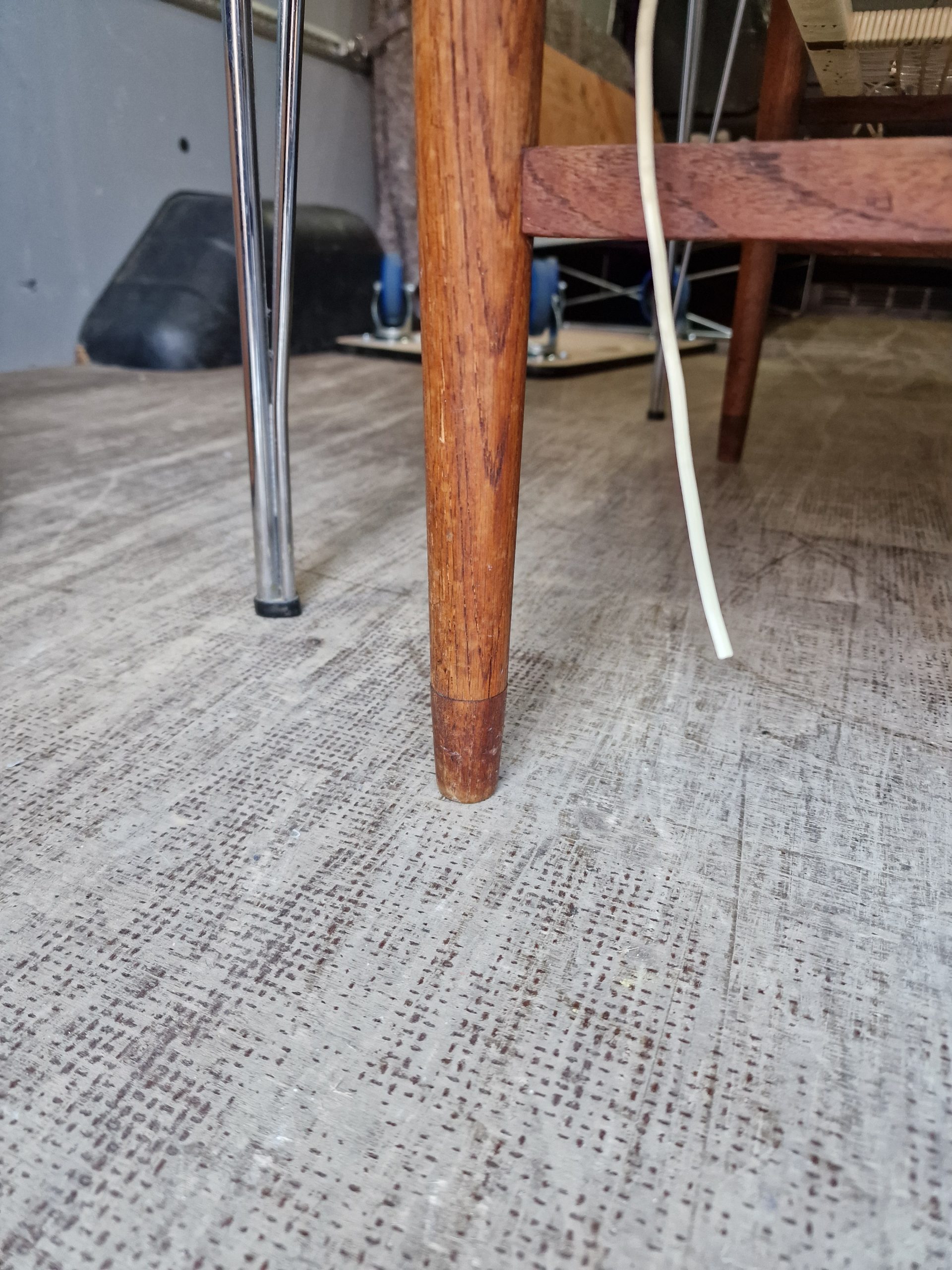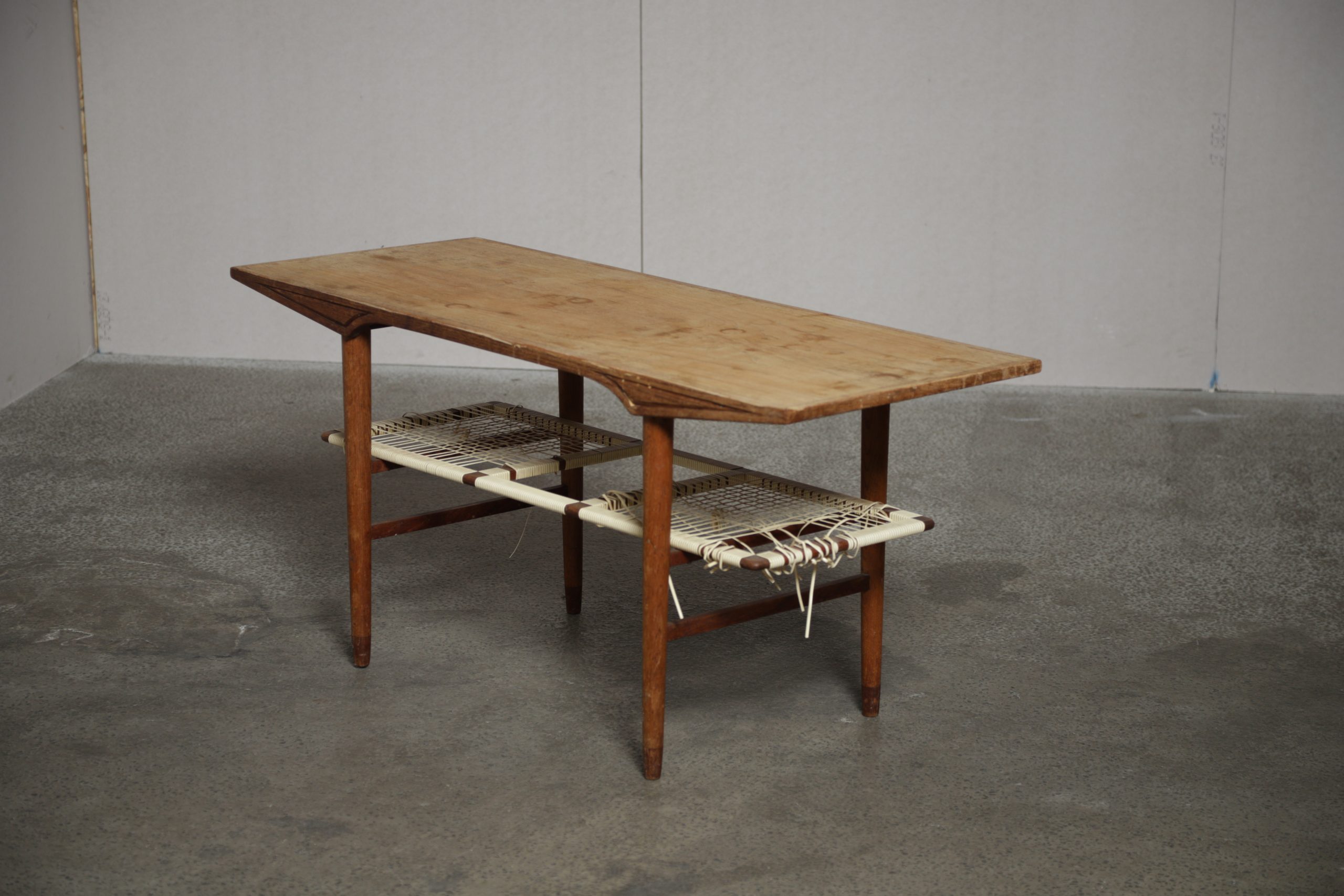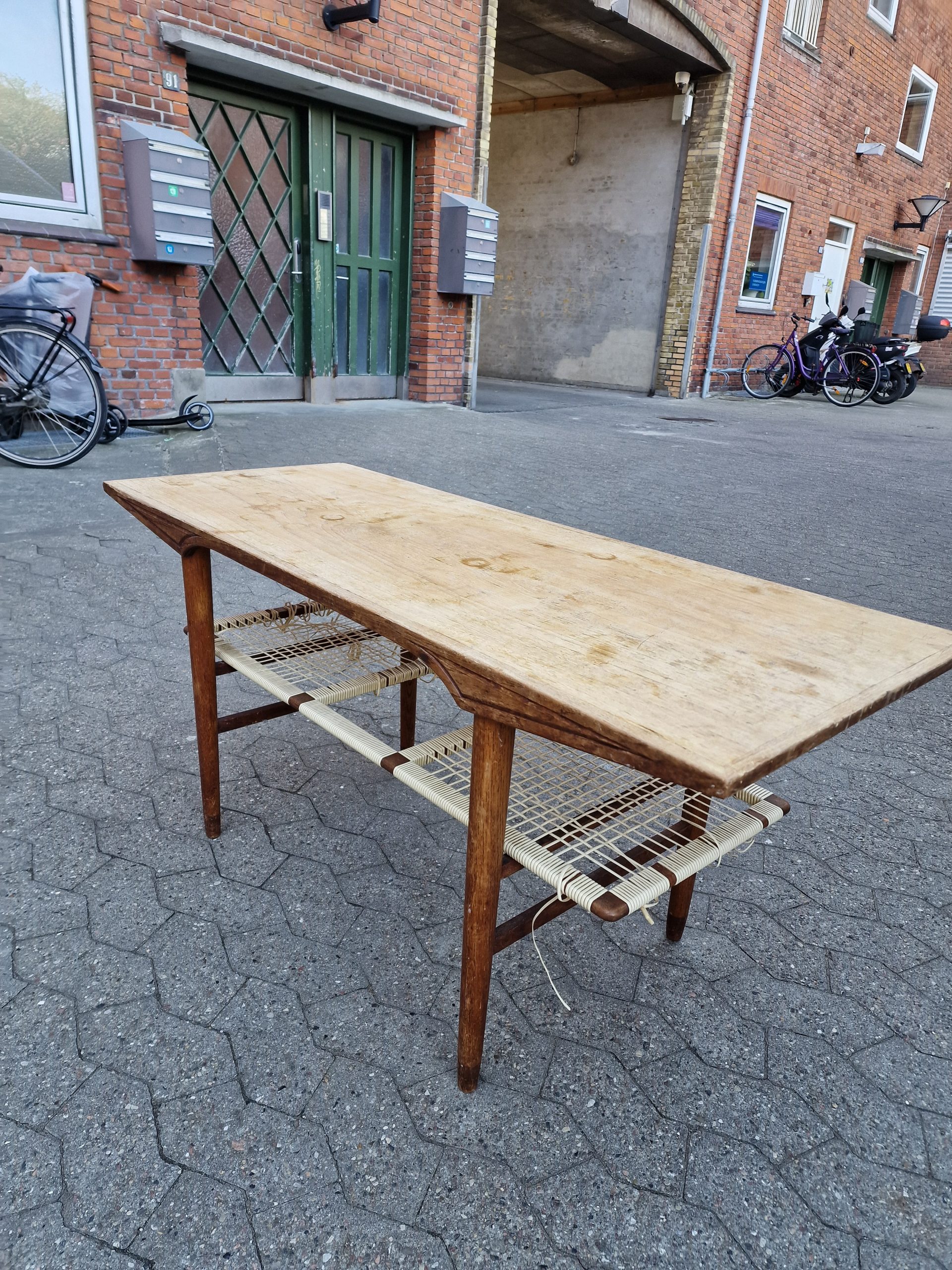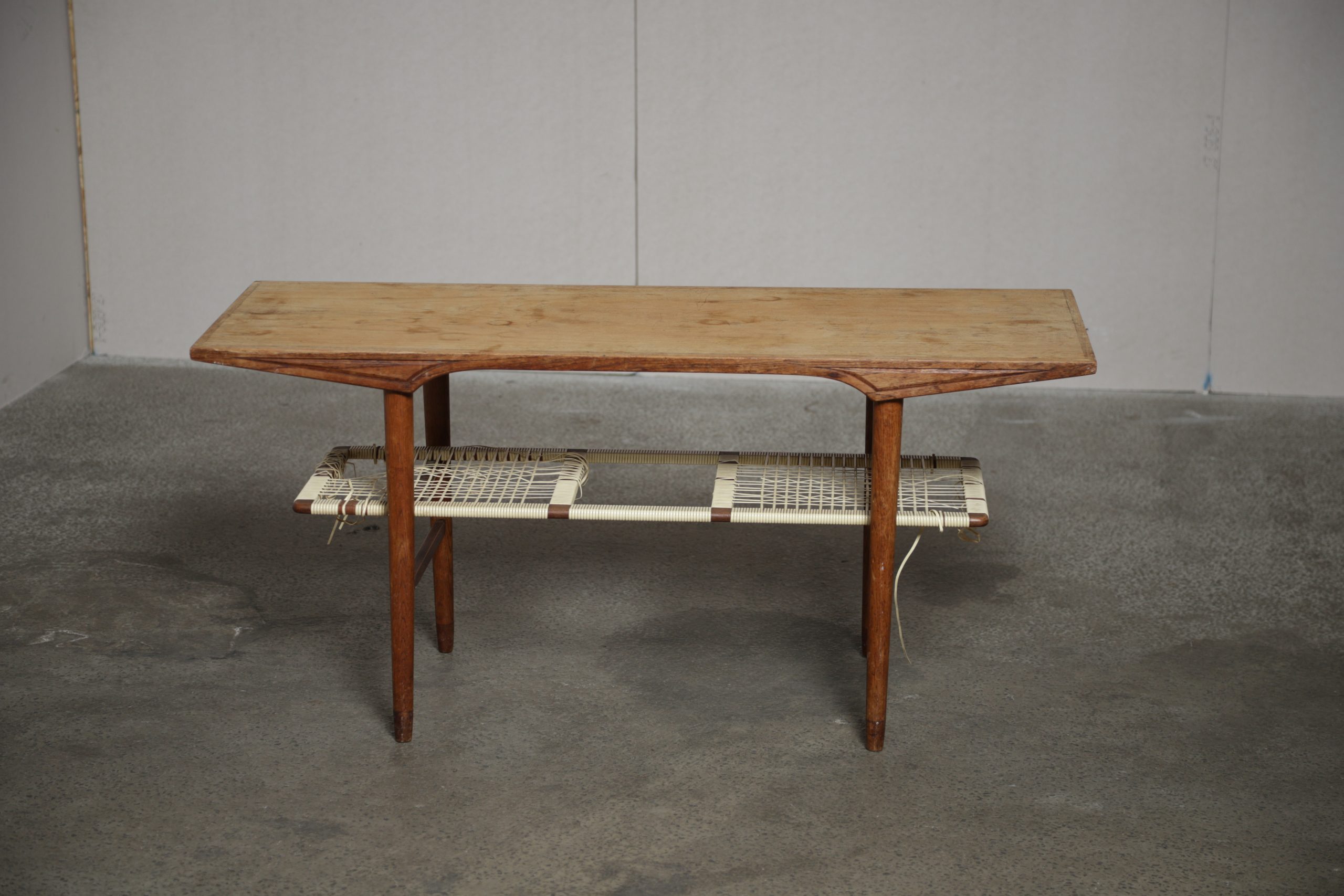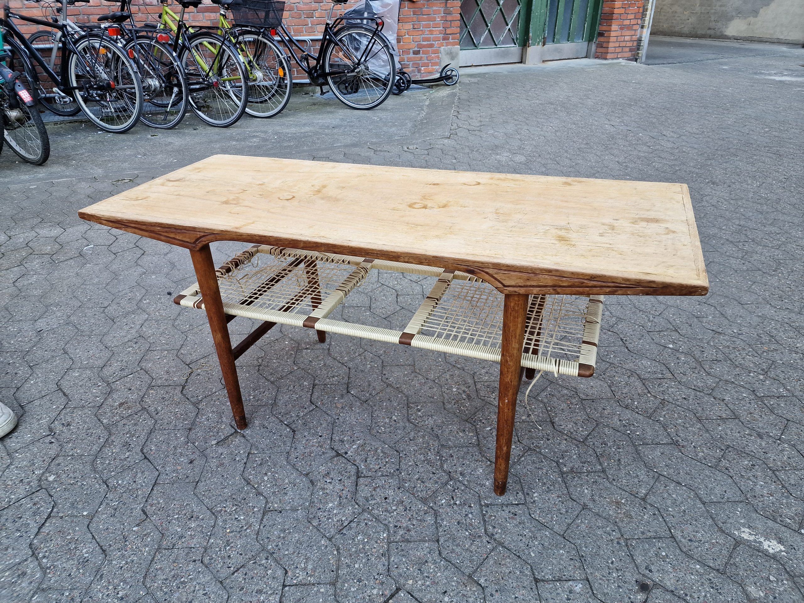 indskudsbord/sofabord i nøddtræ med tynde ben og lave støttepinde